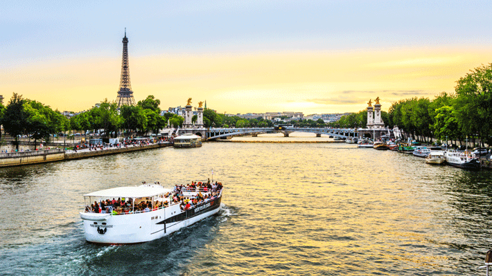 Di chuyển lên thuyền, Quý khách vừa dùng bữa tối vừa thưởng ngoạn phong cảnh hữu tình bên dòng sông Sein thơ mộng của nước Pháp cổ kính.