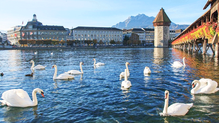 - Hồ Lucern - một trong bốn hồ nước lớn và đẹp nhất của Thụy Sĩ. Qúy khách có thể thả hồn bên bờ hồ thơ mộng, có thể ngắm nhìn đàn thiên nga đang thỏa sức nô đùa trên mặt hồ.