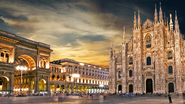 - Nhà thờ lớn Milan - Duomo với kiến trúc Gothic, Nhà thờ Milan chiếm lĩnh trung tâm lịch sử của Milan và các đường phố của thành phố tỏa ra bên ngoài từ quảng trường nơi công trình tọa lạc. Đi bộ đến nhà thờ để ngắm 135 ngọn tháp hiện ra mờ ảo trên thành phố. Nhà thờ cũng được trang trí bằng nhiều tượng đầu thú và tượng. Ngắm bức tượng Madonna nổi tiếng bằng kim loại trên cao. Bức tượng Madonnina đặt trên cao cách mặt đất 354 foot (108 mét) và được mạ vàng, làm bức tượng tỏa sáng rực rỡ trong ánh mặt trời.